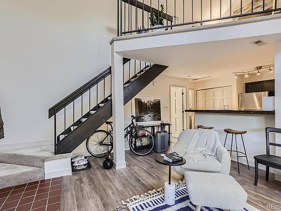 Welcome to this exceptional top-floor 1-bedroom condo with a versatile second-story loft, offering an inviting and private retreat in one of Lakewood’s most sought-after communities, Waterside. Perfectly situated to enjoy the best of Belmar, this condo is steps away from Whole Foods, dining, shopping, a movie theater, trails, and parks, ensuring ultimate convenience. This unique 3rd-level condo features soaring vaulted ceilings and oversized windows that bathe the space in natural light, creating a bright and airy atmosphere. A skylight above adds to the open feel, making the living area warm and welcoming. The sliding doors off the living room open to a private balcony, ideal for relaxing while taking in the stunning western skyline views. The spacious primary bedroom includes an en-suite bathroom for added privacy and comfort. Enjoy the second-story loft that offers flexibility; perfect as a guest room, home office, or additional living space, tailored to your lifestyle needs. Additional highlights include: brand new hot water heater; private storage unit, just outside the front door,; reserved parking space (#144) conveniently located at the base of the stairs. The HOA covers water, trash, snow removal, and community insurance, allowing owners to maintain a limited HO-6 policy. This remarkable condo is an unbeatable opportunity to own in a vibrant, well-maintained community close to everything Denver has to offer. Don’t miss out—schedule your tour today!