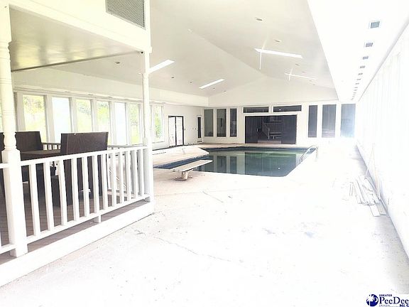 Amazing opportunity to buy your own paradise, Indoor pool, with diving board, with raised bar and entertainment area, 59 X 38 enclosed pool area surrounded by floor length windows, with enclosed patio, (not included in Square footage of home) Sauna room started, Full Pool bathroom started, hot tub and tanning bed remain. Perfect area to entertain. This West Florence homes sits on 1.77 acre lot in the sought after subdivision of Whitehall, close to I95 and I20. Home features 4 bedrooms with 3 full baths. Downstairs Owner bedroom is HUGE, 29 x 25 with fireplace, built in cabinets, walk in closet, plus another room off Master which could be an office, nursery or additional walk in closet, Master bath with double vanity, jet tub and separate shower, Bedroom 2 and 3 are downstairs and share 2nd bath, with jet tub and double vanity, Formal Living and Dining Room, Kitchen with Breakfast nook and coffee bar, Stainless Steal appliances with solid service counter tops, range, DW, microwave, washer and dryer remain, upstairs is 4th bedroom/bonus room with full bath. Bricked fence side and front yard, with Wired workshop and Double Garage, Home features approximately 3000 SF that is not included in Square footage of home, which includes, pool/ entertainment area, enclosed patio and enclosed garage. Enclosed pool area is 2,242 Square feet, it has HVAC vents, unit needs to be replaced, pool pump and heater need to be repaired or replaced / Sauna needs heated rocks added. Close to shopping, Magnolia Mall, many restaurants, Approximately 1 hour to Myrtle Beach, Sold AS IS
