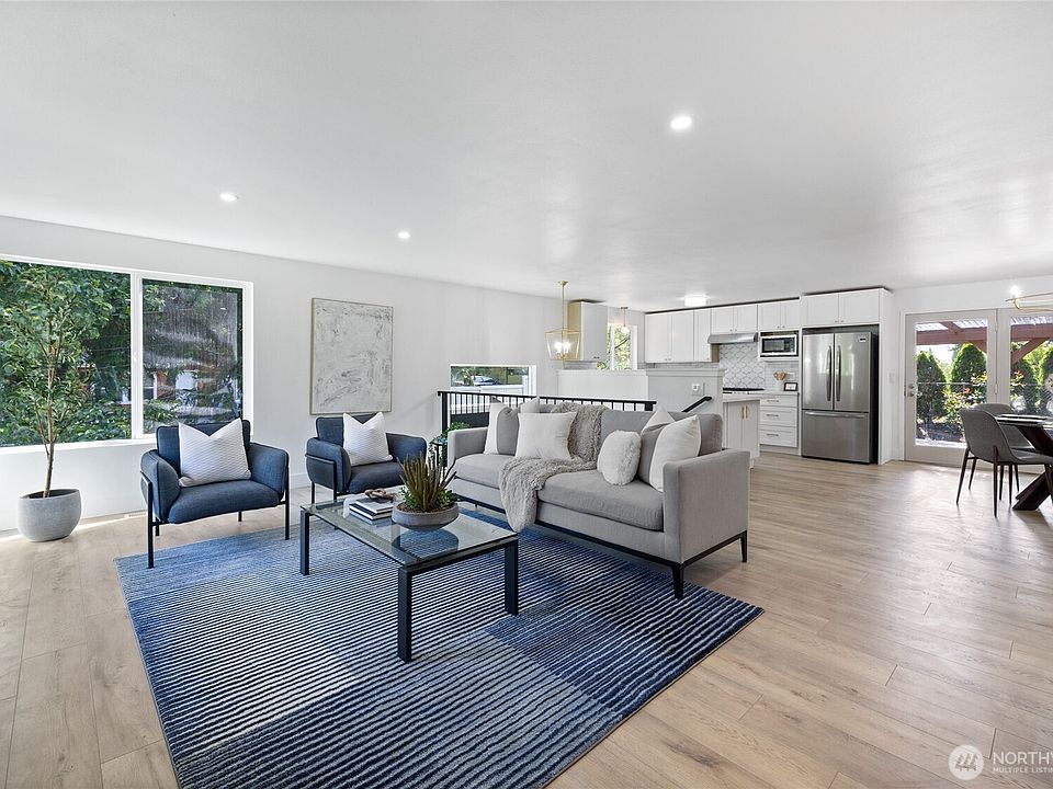 $12,000 seller credit offered for an interest rate buy down!! A turnkey charmer on a private cul-de-sac! This home is filled w/ natural light & modern charm; features 4 bedrooms: 3 on the main level & 1 on the lower level (home office or multigenerational living). The primary is a peaceful retreat w/ a beautiful en suite, dual vanity, walk-in closet, & a peekaboo view of the Sound. Enjoy fresh interior & exterior paint, new windows & new LVP flooring & carpet throughout. The fully remodeled kitchen w/ brand new appliances flow into the dining area and main living space, creating a bright & open concept perfect for everyday living and entertaining. Downstairs, the expansive lower level offers incredible flexibility. Walk into instant equity!