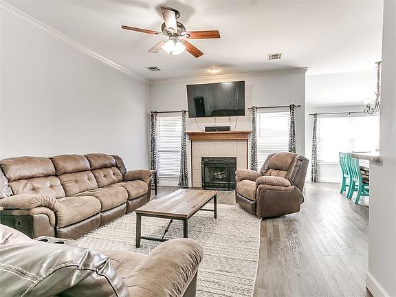 Nestled within the charming Katie Ridge Addition in Moore, this delightful home offers an idyllic setting to call home. With its prime location and thoughtfully designed living spaces, you'll find comfort and convenience around every corner. With 1,693 sq ft of living space, there's plenty of room for relaxation or entertaining guests with ease. Recent updates (2022) include CH&A , additional air return installed in foyer, new luxury vinyl flooring throughout the majority of the home, new paint, baseboards and door casings, and new ceiling fans in the main and NW bedrooms. Perfectly located near Tinker AFB and just minutes from major shopping districts in Norman and Moore. If you're seeking a quality home in a thriving community don't miss your chance to own this exceptional home.