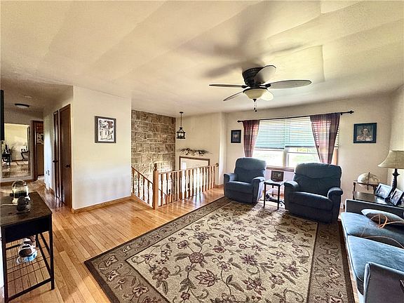 This enviable brick and vinyl split-entry blends modern efficiency with unsurpassed style. A newer roof, windows, and solar panels with transferable warranty provide year-round free electric—plus an annual bonus payout. Step inside the welcoming entry where hardwood stairs and rustic stone accents set the tone. The sunlit living room flows seamlessly into a custom kitchen featuring antique ivory cabinetry, stainless appliances, granite counters, and a coordinating backsplash. A formal dining room overlooks the level backyard. Upstairs, 3 comfortable bedrooms and an updated full bath showcase an Omni-stone tub surround and countertop await. The finished lower level hosts a large family room, second full bath, den, laundry area, and full kitchen. Outdoors, enjoy a sparkling pool and a spacious detached garage with a heated finished bonus room above. Additional amenities include a paved driveway, newer furnace, A/C, and water heater. Located minutes to Route 422 & I-376.