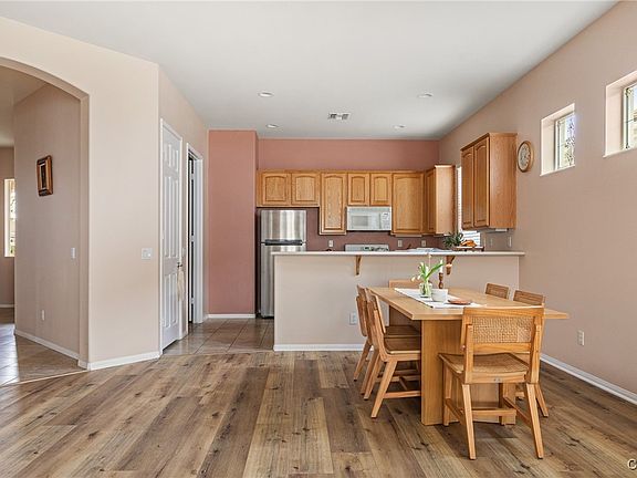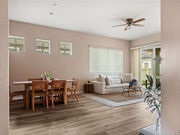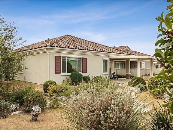 Your oasis awaits! Located on a tranquil cul-de-sac, this enchanting home offers a premium lot with sweeping views! The desirable gated community of Solera by Del Webb provides the perfect 55+ community living. Beautiful landscaping was professionally designed by a Japanese landscape architect, creating a breathtaking drought-tolerant Zen garden throughout the property. The Alumawood patio invites a peaceful space to take in the picturesque views of the gorgeous garden and Mt. San Gorgonio. Step into the open, single-story floor plan featuring an elegant entry, dining room and living room plus fireplace. Brand new vinyl and carpet flows throughout. The home provides a primary bedroom, guest room and a separate den/office area. The primary bedroom features a large, walk-in closet with custom built-in shelves and storage. An en suite bathroom has a standup shower, separate soaking tub and dual sinks. The second bedroom has a large closet and private access to the 2nd bath. Solera provides residents 24-hour guard gated service and several clubhouse amenities to include a gym with an indoor walking track, heated pool and spa, tennis and bocce ball courts, billiards, library, meeting rooms and community activities. The community neighbors top rated golf courses and is a short drive to Palm Springs, Morongo Casino and Cabazon outlet mall. A rare find, you won’t want to miss!