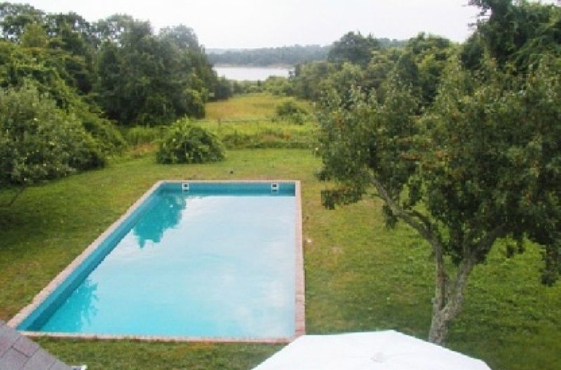 $30,000 August 1st to Labor Day $55,000 Memorial Day to Labor Day $25,000 July 1-31st This1872 shingled farmhouse sits on 2 acres of land just north of the village of Springs with views and access to Accabonac Bay. An extensive remodel in 1992 was designed by William Reese of Southampton and built by Wright Construction of Bridgehampton.There are nearly 2000 sq. ft. of living area, with 4 bedrooms and 3 baths. The master bedroom on the ground floor has it's own outside door. A large living room with fireplace, a study with piano and a large kitchen/dining area with skylights complete the ground floor. There are 2 porches and a large deck surrounding the house. There are three bedrooms on the second floor. The large bedroom has an adjacent bathroom and a large deck with access by an outside stairway. The two small bedrooms each have trundle beds. Total accommodation is for up to eight people. All bedrooms are air- conditioned. A basement and utility area is accessible from the side of the house.A new heated 18'x45' pool is located just off the rear deck from which views of Accabonac Bay can be enjoyed. An outside shower is near the pool. While the bay frontage has been deeded to The Nature Conservancy, access to the bay is maintained over an easement, and a canoe is available at the house. The backyard has apple and pear trees, and a large field extending down to cedar and bayberry at the bay. This quiet and private setting makes for excellent wildlife viewing, and is adjacent to the Pollack-Krasner House and Study Center.