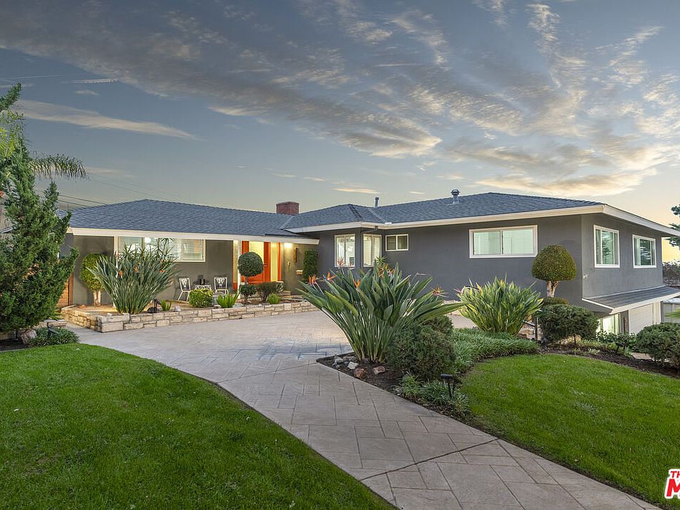 Fabulous Mid-Century VIEW Home in PRIME Burbank! Welcomed by a sizable front patio enter this 4 bedrooms/3 bath home in a quiet neighborhood in the hills just above Kenneth Rd. Many renovations have been made in the last few years. Fully updated kitchen with quartz countertops, stainless appliances, eat-in center peninsula, workstation and a powderroom right around the corner. Opens to a spacious dining area and formal living room with a fireplace and great mid-century accents. Step down into a bonus flex space great for children, recreation area, gym, or workspace. Three (3) ample bedrooms w/great closet space. The Expansive, Primary Suite has a wall of custom-built closets, plus a separate walk-in closet. Newly redone bathroom with dual vanities, spa tub, separate shower, and private commode area. Attached 2-car garage plus an updated workshop with new cabinets and convenient direct access! The low-maintenance backyard has a great play area for children, covered loggia, a fire pit w/sitting area, and a newer above-ground spa. Other features include an updated laundry room, many system updates & amp; tremendous storage throughout the entire home, including a large storage shed hidden on the side of the home. Plus, GREAT views from both the front and backyard. Close to all amenities and great schools!