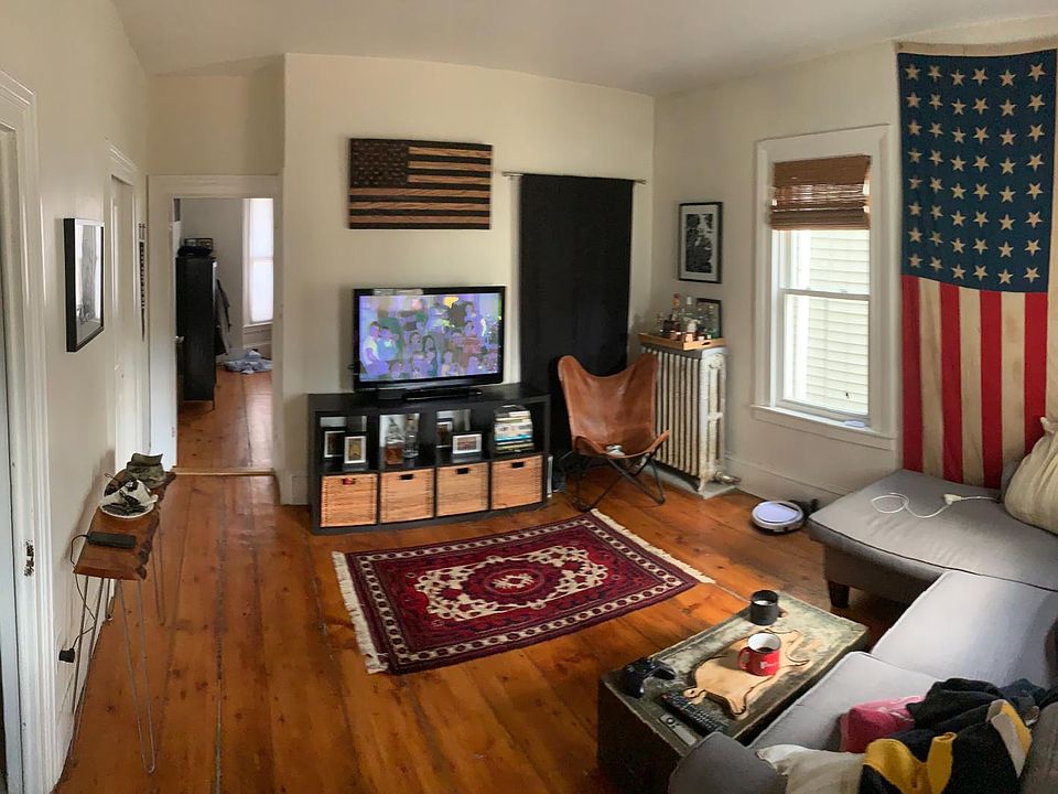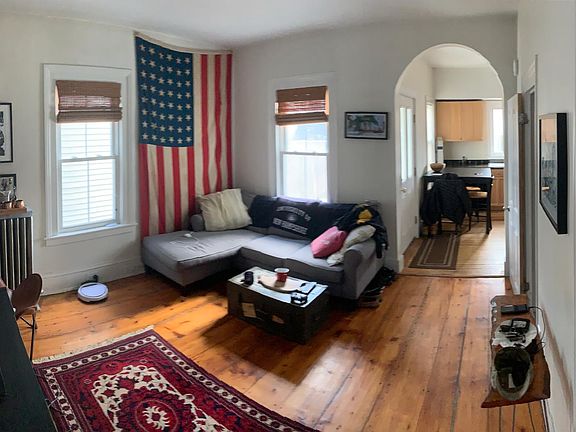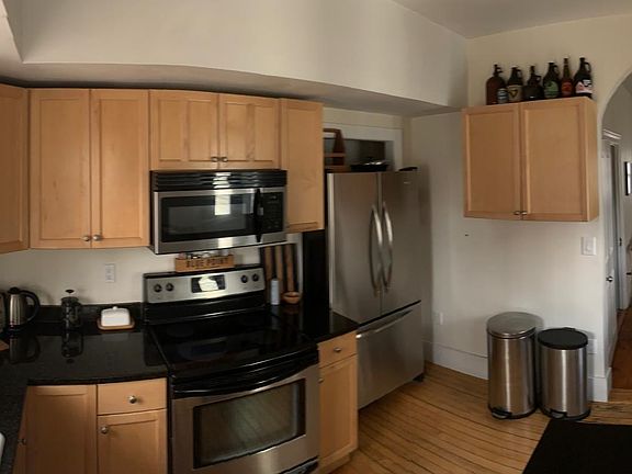 Short walk to downtown Portsmouth! Available May 1st. Apartment consists of 3 nicely sized rooms with high ceilings: bedroom, living room and eat-in kitchen. Private entrance with paved patio. Share the yard with only one other unit. This apartment is on the first floor of a 4-unit apartment house. Great kitchen features granite countertops, maple cabinets and stainless steel appliances, including large fridge, oven range, dishwasher and microwave. Refinished wide-pine wood floors make this place charming. Updated bathroom with marble floor, granite vanity top and shower stall (no tub). Large bay window in the sunny bedroom. Plenty of on street parking. Very firm on No Smoking and No Pets. Tenant pays utilities including electricity and heat (efficient natural gas heat). Landlord pays for hot water and water/sewer. Washer and dryer hookups for your own stackable washer and dryer. One year lease and $1,750 security deposit required. I accept the Zillow application, which provides credit history and a background check.