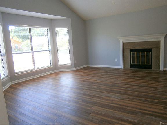 This is the home with the features that really matter. The roof is only 5 years old, the beautiful woodlook flooring is new as well as the faux wood blinds all through the house. The tankless gas water heater offers convenience, efficiency and economy. High quality storm doors on both front and back doors offer beauty and added light. The kitchen offers real wood cabinets and lots of counter and cabinet space plus a built in desk with shelves above. The counter tops are new. The entire interior of the house has just been painted. The back yard offers a wonderful place to relax with a large patio overlooking the inviting inground pool. This is a must see home with too many nice features to list here in addition to the location offering easy access to I-10, UWF, West Florida Hospital, Navy federal CU and much more.