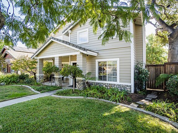 This handsome two-story traditional home is set in the foothills of Monrovia, minutes from the highway, Myrtle Avenue, shopping, restaurants, coffee houses, hiking, and more. Tucked away on a quiet tree-lined street the property offers stunning views of the mountains. Hardwood floors and beautiful natural light run throughout the first floor. Enter into a welcoming living room with vaulted ceilings and a grand fireplace equipped with a powder room right off the hall for convenience. Dining room is conveniently located and can comfortably seat 10. The kitchen offers lots of custom cabinetry for storage, a big island, stainless appliances, a breakfast nook that can seat 6/8, and opens into the large family room with fireplace, perfect when entertaining. Guest bed with ample closet space with en suite bath along with a dedicated bar area and laundry room. The family room opens out onto a fabulous entertainment deck with a lounge area, built in bar and bbq with Viking appliances, a dining area and a stunning outdoor fireplace with additional seating. The second level is carpeted for noise and offers two large guest bedrooms with tons of closet space, a large guest bath with double vanity and tub/shower, and the primary suite. which boasts valued ceilings, a walk-in closet, an additional closet, a huge bathroom with double vanity, soaking tub, shower and separate toilet closet. The expansive backyard is park- like and offers a big grass area along with fruit trees, parking for 8 cars and plenty of room for a pool, pickle ball court, or both!