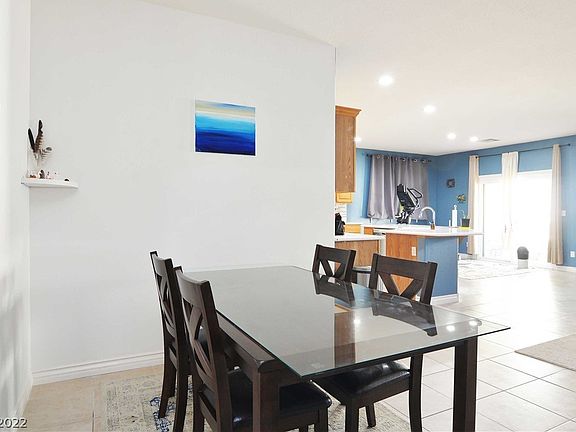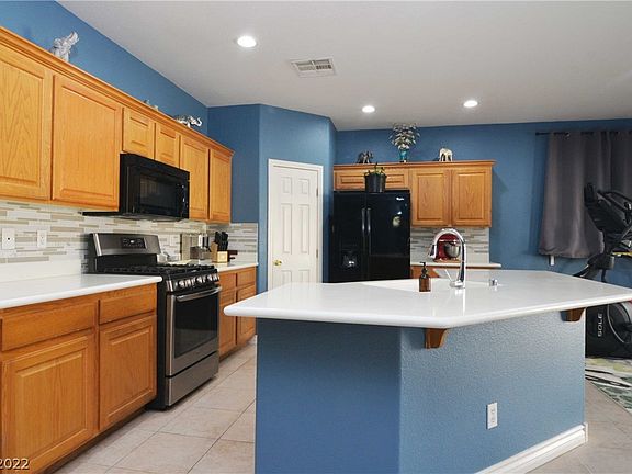 Great open floor plan 4 bedroom/ 2 Bathroom/ 2 Car home. All appliances included. Kitchen Island breakfast bar combo, RO system under the sink, LED lighting throughout, Black & Stainless Steel appliances, Solid oak cabinets with raised panel doors, and beautiful gray mosaic tile backsplash. The family room and 3 bedrooms have a custom wall mount Minisplit AC/Heat/Fan with remote controls. Easy to heat or cool one room without the cost of having to use a thermostat for the whole house. New back sliding glass door and rear windows in the family room. Spacious Primary Bedroom with high countertops in Primary Bath. Includes a Minisplit unit, walk-in closet and a separate tub & shower, New Carpet in bedrooms 3 & 4. Finished 2 car garage with a large water softener included. Backyard Patio with patio cover. Easy maintenance desert landscaping. Next to Craig Ranch Park and shopping.