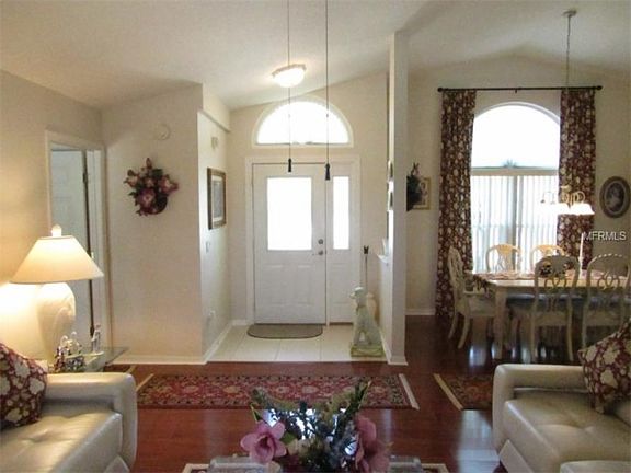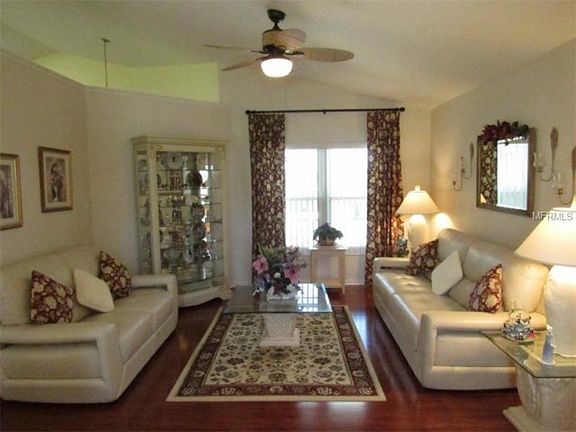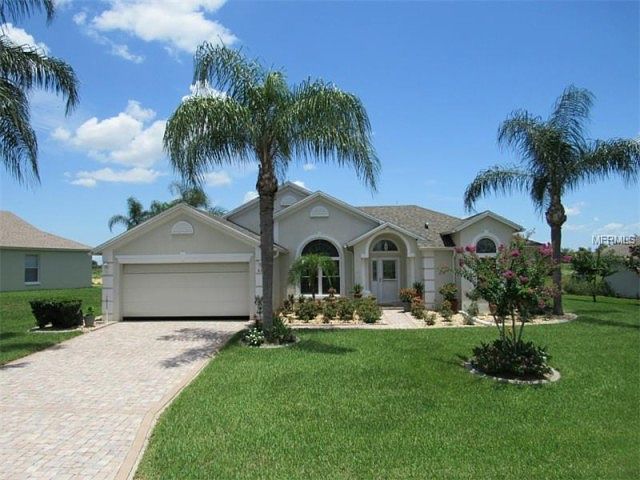 Everything you could hope for is included in the mint condition pool home with a gorgeous view! All windows have recently been upgraded to double pane low-e for max energy efficiency, the AC was upgraded to a brand new energy saving model in 2010 & all cabinets have recently been resurfaced. This immaculately maintained 3 bedroom/2 bath pool home, with no rear neighbors is in move-in condition. From the time you arrive you are greeted with lush landscaping & so many upgrades. The roof was replaced in 2011. The home is located only 2 miles from Champions Gate Village & less than 1 mile to US 27. The sought after home boasts a split bedroom floor plan with Master Suite on one side of the home & the secondary bedrooms located on the opposite side of the living areas. The owners upgraded the flooring to a beautiful high end laminate throughout the master, formal living and dining as well as the kitchen and the living room, laundry room. Ceramic tile flooring in the bathrooms. Open living area includes kitchen, breakfast nook and family room with vaulted ceilings. The gorgeous kitchen has a gas range, rich wood cabinetry, attractive solid surface counters, breakfast bar and a large closet pantry. Sliding glass doors from the family room provide access to a covered patio area & the screened in pool deck. The huge master suite has terrific walk in closet space and sliders leading to the pool deck. Master Bath has dual vanities, garden style tub with separate walk-in shower & a large walk-in closet.