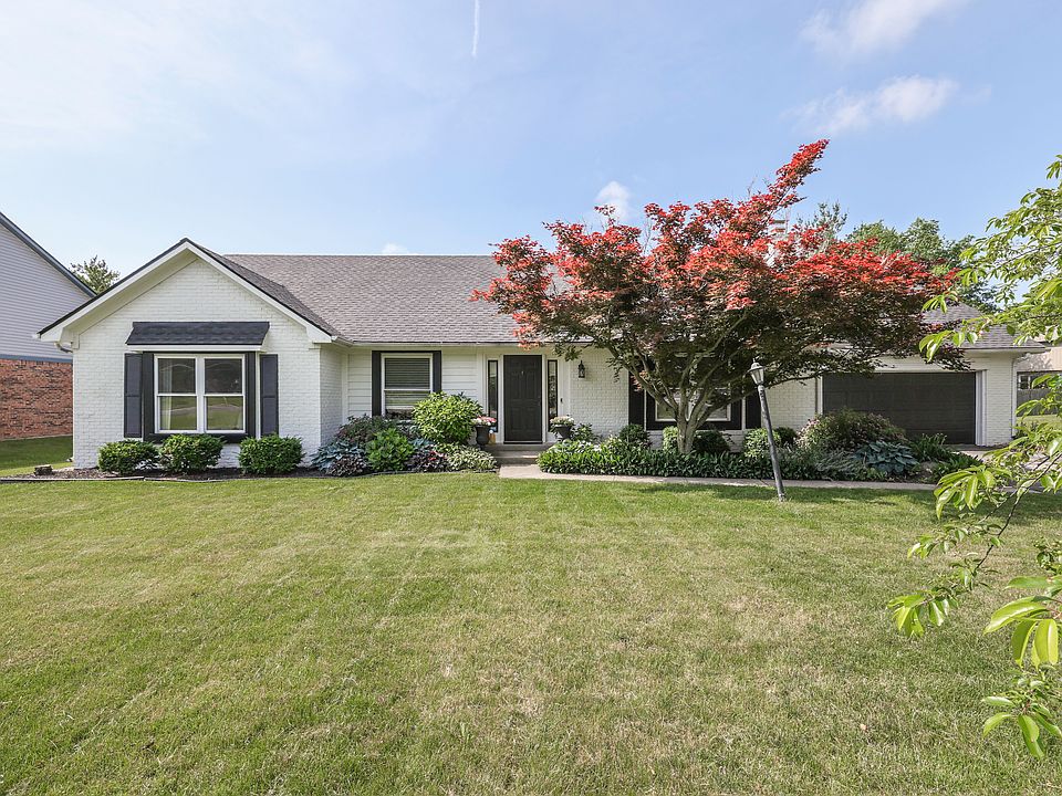 Great location! This beautiful home is within walking distance to the Monon Trail and Clay Terrace shopping and restaurants.This wonderful updated 3 bedroom 2 bath ranch home is move-in ready. Large open kitchen with vaulted ceilings, skylights, granite counters, stainless steel appliances, reverse osmosis filtration system, and the gas cooktop looks out to the screened porch and large fenced back yard. The great room has a vaulted ceiling and skylights for plenty of light and an airy feeling, plus a gas fireplace for coziness. The spacious screened-in porch is perfect for entertaining and leads out to a paver patio. The mini barn in the back offers extra storage space. Carmel schools, close to shopping, dining, and US31. Come see this great home! Roof was replaced Fall of 2021.