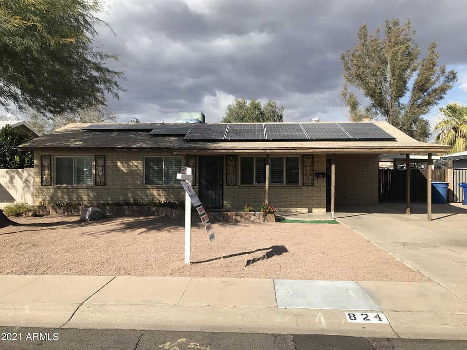 This charming brick home has it all! With 4 bedrooms & 2 updated bathrooms this freshly painted home has separate formal living room and family room addition (220 sq ft not in assessors sq ft) in the back with wood floors and plantation shutters throughout and brick fireplace. Home has all new pipes and sewer from last year. Also has large enclosed separate laundry room. Diving pool and grassy yard, mature citrus trees, garden area and large shed are a few of the yard features. RV gate, covered patio with extra parking. NO HOA. FHA Buyers take advantage of higher loan limits as well as the solar panels- Last year Summer electric bill was $30!! Prime location with proximity to great schools, quiet streets and walk or ride to downtown Chandler.