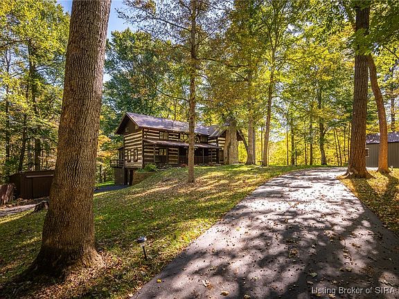 Escape to this one-of-a-kind log cabin retreat, where rustic charm meets modern comfort on 5.39 acres of scenic beauty in Georgetown, Indiana. Thoughtfully updated with new fixtures, HVAC, roof, and more, this stunning 3-bedroom, 2.5-bath home offers an inviting space to relax and unwind.