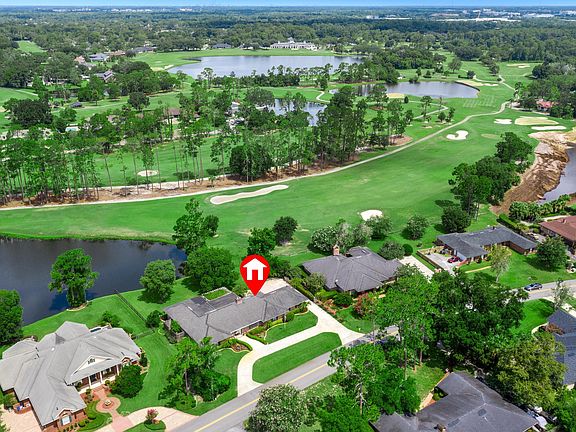 Simply breathtaking the incredible lake to golf course views from owner's suite, family room/bonus room, sun room, patio, kitchen, and guest suite. Traditional one level all brick home with circular driveway on lake/golf course lot with mesmerizing views from every window, patio and backyard. Lot is almost 1/2 acre--so plenty room for a pool! Must see the Chefs custom kitchen, solid wood cabinetry, granite and gourmet gas range/hood with handy pot filler. Prep/vegetable sink, large center island with baking station, ice maker and hidden washer and dryer. You will enjoy loading the dishwasher from with the lake/golf course views from the kitchen sink. This home has large gas tank for the range, fireplace and tankless water heater.Please note: The soft window treatments DO NOT CONVEY.
