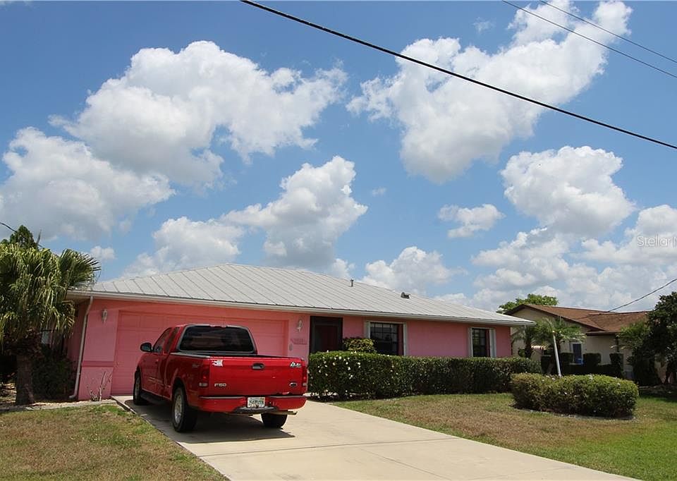 Home sits on almost half acre in the community of Sunnybreeze Palms Golf Course Community with breathtaking view of golf course and lake. Nicely landscaped and freshly painted. Move in ready. Spacious and well designed open floor plan with over 1500 square feet of living space. Eat in kitchen boasts wood cabinetry and has pass through to the dining area. Master suite as walk in closet and private bath with grab bars in shower and door leading to the garage. Other features include color accent walls, blinds throughout, metal roof, new pool pump, and storm shutters. Beautiful heated pool with 2 dolphin fountains overlooks the golf course and lake. Enjoy the view from your tiled lanai. Great for pets with 6 foot fence around rear of property. Proximity to waterways, local beaches, dining, shopping, and golf courses makes this property ideal for the Florida lifestyle. Nice home in a quiet rural neighborhood. Put this one on your list.