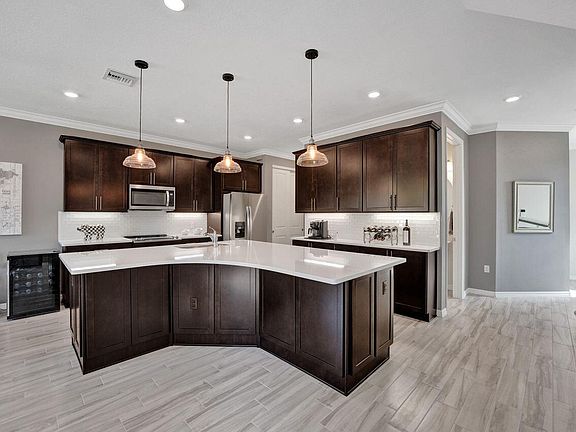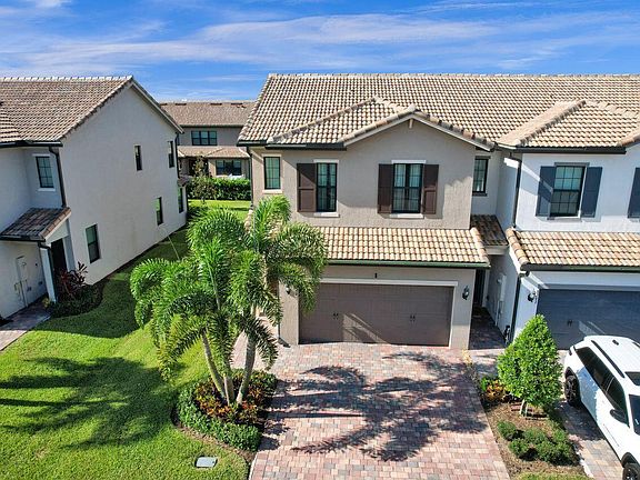 Beautiful corner unit townhouse with 3 bedrooms, 2.5 bathrooms & a 2 car garage that features many custom upgrades. Enjoy a gourmet kitchen with 42 inch crown molded cabinets, under-counter lighting, subway tile backsplash, upscale S/S appliances and an elegantly finished quartz island with pendant lighting that overlooks the main living area. The upstairs primary bedroom is a spacious retreat with an en-suite bathroom and 2 walk-in closets. A full bathroom with a combo tub/shower is shared by 2 other bedrooms. The laundry room is conveniently located upstairs as well. Other features/upgrades include: custom interior 8 foot high solid 2 panel doors, hurricane impact windows & doors, designer staircase railing, coffered ceilings, recessed lighting, crown molding & pre-wired TV mount... ...locations. This immaculate & move-in ready home will not last.