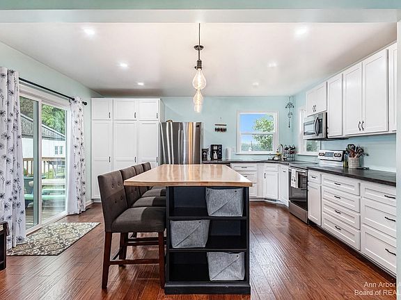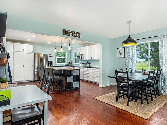 Welcome to this fully updated 4 bedroom, 2 full bath house on 3.81 acres! This home features an open floor plan with wood floors throughout the lower level. The kitchen has polished concrete countertops, new appliances and a large island with a butcher block counter. It's open to an eating area and the living room that has a wood burning fireplace. The kitchen also opens to a large deck that overlooks the farmland that's behind this property. The first floor also has two full bathrooms and a laundry room. Upstairs has two bedrooms that have been updated with new vinyl plank flooring and paint. There's plenty of storage space in the basement, and this home also has a 30x20 barn on the west side of the property. Property is a U shape and made up of two parcels (R -18-06-300-007 and R-18-06-300-06) for a total of 3.81 acres. Offer deadline of Monday, June 13th at 2:00pm.