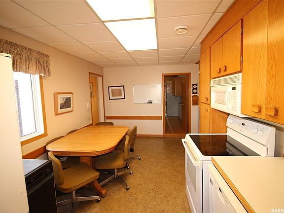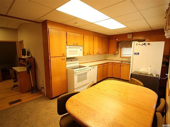 Discover the perfect blend of country living and business potential with this exceptional 9.96-acre property located adjacent to the town of Shaunavon. Designed to accommodate both family life and entrepreneurial ventures, this acreage offers a rare combination of comfort, space, and functionality. The 1916 two-storey character home exudes timeless charm while offering all the modern conveniences. The well-appointed kitchen features abundant cabinetry, a built-in dishwasher, microwave hood fan, and French door refrigerator. Just off the kitchen, a custom oak office with built-in cabinetry and desk provides the ideal space for working from home. The living room is warm and inviting, with a vaulted ceiling and hardwood floors. The main floor also includes two spacious bedrooms, a full 4-piece bathroom, and a dedicated laundry area with storage. Upstairs, the second floor is set up as a self-contained revenue suite, featuring a galley-style kitchen and dining area, a large living room with sweeping views of the town, two bedrooms, a full bath, and a laundry room with additional storage. The lower level of the home is designed for relaxation and entertainment with a massive games room, a den complete with a full wet bar, a 4-piece bath, and extensive workspace and storage areas. For those seeking business-ready facilities, the outbuildings are exceptional. The main shop measures 66’ x 100’, including an 81’ x 48’ heated bay with floor drains, welding and workbench areas, and a separate radiator repair room. The shop is fully equipped with hot and cold running water, sewer service, multiple 30- and 50-amp electrical plugs, two bathrooms, and a break room. A mezzanine level provides additional office and parts storage space. The 55’ x 31’ north addition houses a used-oil burner system that operates the in-floor radiant heat for the buildings. Two additional cold storage buildings offer more versatility.