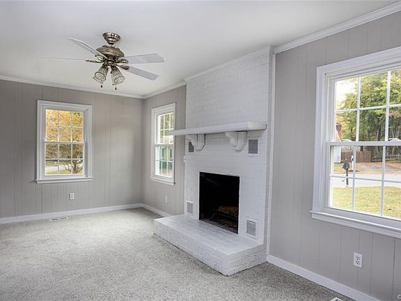 Renovated 3 bedroom, 2 bath, ranch situated on a lovely corner lot. Upgrades include new vinyl siding exterior, new vinyl replacement windows, new dimensional shingle roof, new heat pump, new carpet through-out, new vinyl flooring in kitchen & laundry room, new kitchen counter-tops, new bathroom vanities with new faucets, freshly painted interior, includes painted brick fireplace and kitchen cabinets. Plus, new door knobs through-out, except on back door. Kitchen appliances include refrigerator, smooth-top range & dishwasher. House also includes a double width concrete driveway. Won't last.
