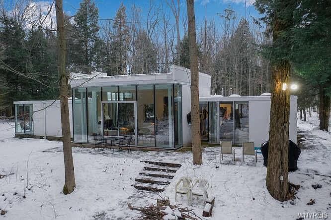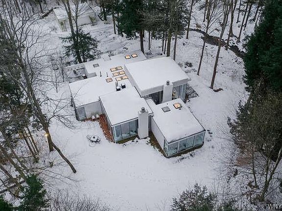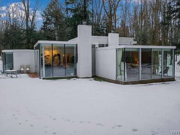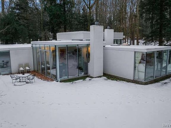 Magical, Gorgeous, one of kind custom built by bufflonian architect BRIAN CZAJA and artist ANTONE who's paintings all over house. you will be amazed throughout the four seasons,fall yellow/orange, lush greeneries with babblin brooks and fireflies in summer, incredible whit winter wonderlands and beautiful forest springtime blooms awakening. 3 bedrooms 2bathrooms, 2 livong rooms, 2 fireplaces, seprate 3 car garages, 8 foot high ceiling full basement 2 new furnaces 2014, Central AC. home has 12 inch poly styrene foam throughout all walls and ceiling for added R-factor diminishing heat loss to compensate for expansive window walls. 8 foot tall doors throughout. Glass are doubled pane safety glass with argon gas.