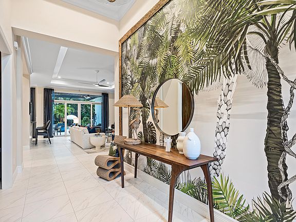 This custom Julia model features hundreds of thousands of dollars in upgrades and magnificent appointments.Although model perfect plus,this designer's own home has been neutrally and tastefully decorated to feel like ''home''.Features include impact windows,whole house generator,glass entry doors,porcelain tile,crown moldings,imported chandeliers,fans,LED square mini hi-hats,custom window treatments & wallpapers,custom built-ins throughout,outfitted closets,upgraded baths and more!Gourmet kitchen with all the bells & whistles!This amazing (3 br+den+hobby room,3.1 ba) pool home sits on a lushly landscaped private lot backing south.You'll love the covered & extended limestone patio,Astroturf lounge area,built-in grill,heated saltwater pool & spa with sun shelf&lights & huge birdcage screen.