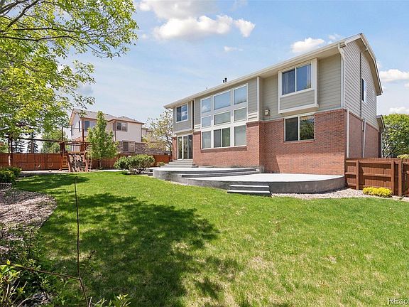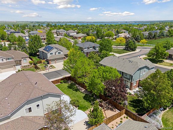 Welcome to your dream home, nestled in the exclusive community of the Hills at Standley Lake, Step inside to discover a sun-filled two-story great room, anchored by a cozy fireplace and framed by a stunning wall of windows, which enhances the open concept design of the main level. This space seamlessly flows into a large and beautiful kitchen equipped with a pantry, newer stainless appliances, expansive granite counters cherry cabinetry and perfect center island, ideal for culinary creations and social gatherings. Bright eating area adjacent to oversized slider doors opening to an expansive patio and a huge backyard, perfect for any outdoor activity from summer BBQs to tranquil autumn evenings around a fire pit.