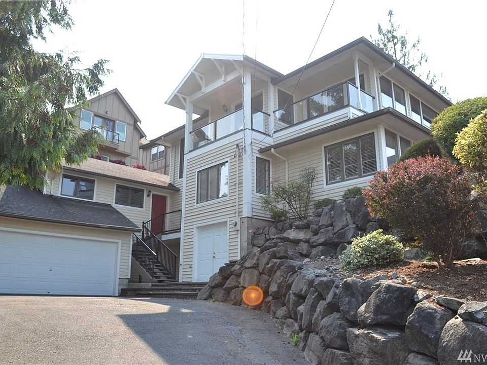 Spacious Seattle 5 bed, 3 bath home with a view! House features large kitchen with walk-in pantry, 2 cook tops, and built-in desk. Living area has fireplace, wet bar, and door to patio with great view of Lake Washington. Guest quarters with separate entrance and full bath. Attached two car garage with additional parking on driveway. Generous amount storage space in unfinished basement. Too many features to list, must see!
