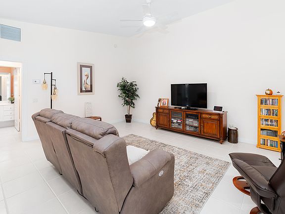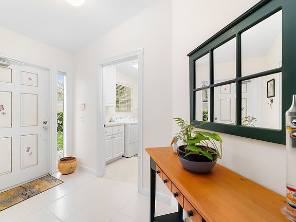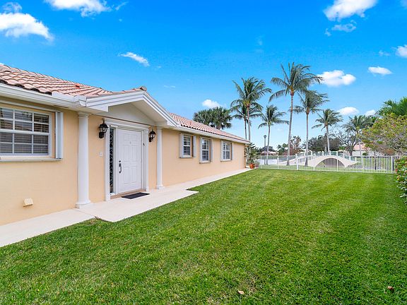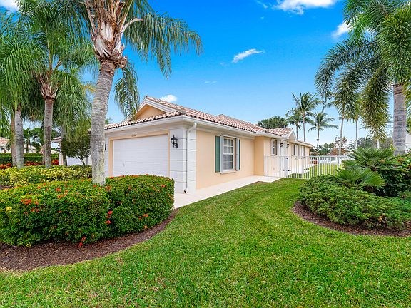 Immaculate EXTENDED CAPRI III Model. 2 Bedroom, 2 Baths, 2 Car Garage villa with water views of the lake in highly sought after all-ages community of Village Walk! Open Kitchen boasts lots of cabinets, GRANITE countertops with backsplash, new GE Profile s/s appliances (12/22). (2024) garbage disposal. Large peninsula island for additional seating. Additional features: split bedroom floor plan with vinyl plank flooring, walk-in closets with built-in shelves and mirrored doors. Large primary suite with a view of the lake and foot bridges. Porcelain TILE throughout rest of house, 6-panel doors. Primary bath has large shower, lighted floating vanity with dual sinks, mirrored linen closet with shelves. The second bath also has floating vanity with lighting underneath, tub with shower, glass doors, large linen closet. PLANTATION SHUTTERS throughout. CENTRAL VACUUM system, recessed LED lighting in kitchen. Large living area with vaulted ceilings. Dining area, family/den area with hurricane impact glass triple sliders overlooking large concrete patio with view of the beautiful lake and Venetian-style bridges leading to the Towne Center (about ¼ mile). Large laundry room w/ laundry tub, cabinets and additional storage closet with shelves. (2019) HE washer and dryer. Whole-house surge protection. (2024) garage door opener. Complete accordion hurricane SHUTTERS to protect from Florida storms. Paver driveway. A/C (2019). Upgraded epoxy flooring in 2-car garage. HOA covers exterior painting every 7 years (done this year), roof cleaning every 3 years (done this year), lawn services including trimming of shrubs/hedges, palm tree trimming, irrigation, pest control, fertilization. ADT security alarm monitoring, high-speed internet, and premium cable from Comcast. Manned gate with roving patrol. On-site Activities Director and an Activities Committee that are always planning fun and informational events for our multi-generational residents. Trivia nights, karaoke, adult and kids' bingo, pool parties, bar-b-ques, water aerobics, yoga, fishing tournaments, holiday activities, concerts and health-related seminars are just some of the activities you can enjoy. Community is filled with amenities: Fitness center, playground, 2 pools (lap/resort style), tennis courts, basketball, bocce ball, pickle ball, mail room, hair salon, dog grooming business, real estate office, and café serving breakfast, lunch, and dinner 7 days/week. Located close to Wellington Mall, restaurants, schools, hospitals, churches, Palm Beach airport, I-95, Florida Turnpike, Kravis Center, Equestrian events. Located in quiet cul-de-sac with great neighbors.