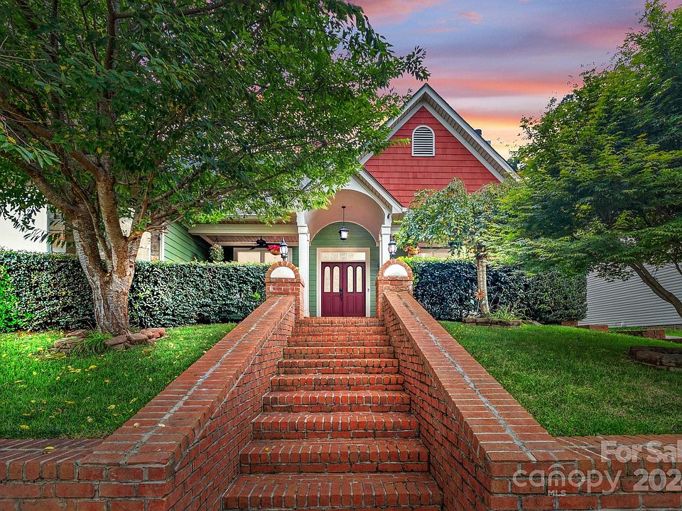 This is Home where every detail radiates comfort & warmth. Start w/the charming brick staircase leading to a terra cotta-paved front porch & ceiling fans, creating a welcoming first impression. Inside this Custom-Built Home, reveals a mosaic-tiled floor in the two-story great room w/a stone fireplace & large windows that invite the outside in; you feel instantly at home. The chef’s kitchen features a gas stove, pot filler, w/a distinct blend of decor perfect for everyday meals & special occasions. Enjoy coffee in the bright breakfast area or relax in the versatile sunroom, perfect for year-round use or as a main-floor guest/in-law suite. The main-floor primary bedroom is a retreat w/luxurious en-suite & walk-in closet. Upstairs offers two spacious bedrooms, each w/its own en-suite & walk-in closet; & large loft area. A flex room to serve as another bedroom. The PRIVATE courtyard features stone pavers, firepit & fountain for relaxing! Land is green space, ensuring no future development.