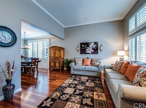 Remodeled and move in ready home in the sought after Santiago Hills community in Orange. Located on a quiet street, interior location in track, Chapman Hills Elementary school is walking distance, so is Santiago College, Santiago Hills Children's Park, Peter's canyon regional park, and Irvine park. Home is upgraded with Brazilian Cherry wood and tile floors, neutral paint, corian counter tops in kitchen. Large master bedroom and bath, that includes a separate shower plus a tub and a walk in closet. Solid Brazilian. Cabinet in nook included, The home offers a formal living and dining rooms, family room and a nook, and four bedrooms upstairs, shutters through out. Low maintenance back yard with synthetic turf, and jacuzzi. No mello Roos, very low association dues include front landscaping.