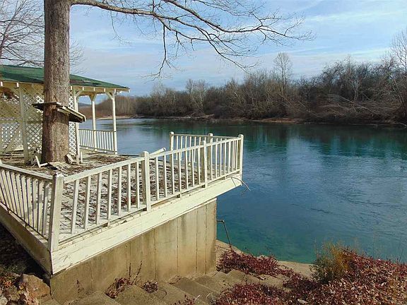 One of the best building sites on Current River!!! The home was badly damaged by the 2017 flood and probably is not savable. There is a 24x30 shop/garage and a carport that were not damaged. You could rebuild on this site starting at ground level above the flood line and extend out toward the river. Put a patio underneath. You would have no steps into the cabin, be on the river, and above future floods. There are 250' of river frontage. Community boat launch. Community well. Do not overlook this one!