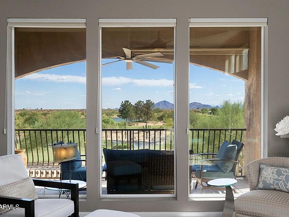 Walking distance to the TPC Stadium Course. Home to the World-Famous Waste Management Phoenix Open. Lower-level entry leads to your upper-level living area. Office w/ dedicated workspace provides privacy for traveling workaholics. After work, enjoy your modern kitchen, cozy living room, dining room, and master bedroom all with golf course views