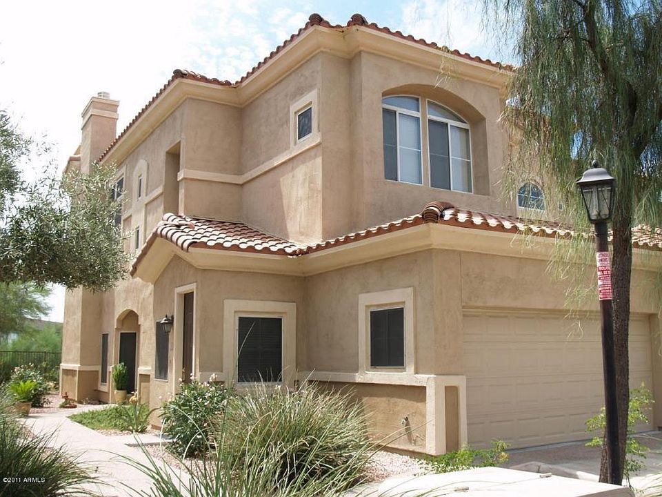 Short Term Rental Available for the Summer! Available until Sept 30th. Enjoy an amazing view of the TPC Champions Course while sipping your coffee on the covered upper-level balcony while viewing the mountain sunrise. You are a chip shot away from the beautiful 9th green of the Champions Course at the TPC! This custom-decorated, 3 bedroom, 2 bathroom condo is in the heart of one of the most sought-after areas in North Scottsdale. Located in the Montana Del Sol complex, this gated community boasts the best location, within walking distance, to all the action of the Waste Management Phoenix Open. A large private community pool and spa tub, BBQ area and covered cabana compliment your comfortable and luxurious accommodations on the second floor. The unit features granite counters, stainless steel appliances, fireplace, entertainment center, full size washer and dryer, large master bedroom with TV, walk in closet and double sink ensuite. All linens and toweling supplied. There is a single car garage for private entry. Montana Del Sol is in the center of all the best attractions Scottsdale has to offer, shopping, restaurants, entertainment, golfing and more. Easy access on and off the 101 loop freeway to access sporting venues for NFL, NBA, NHL, and MLB games and all that the Greater Phoenix area has to offer. FEATURES 14' ceilings throughout, southern exposure, ceiling fans, spacious open floor plan, views of golf course, water and mountains, intercom system, professionally decorated, washer/dryer, full guest bathroom, double garage, covered balcony and convenient location. Two blocks from the 101 freeway and just 20 minutes from Sky Harbor Airport. GOURMET KITCHEN is very large and fully equipped. New under cabinet lights. Granite countertops with ample cabinets for your entertaining needs. Gather in the dining room, view the golf course and mountains. GREAT ROOM is light, bright and spacious with a wall of windows looking out to the balcony. New 42' Plazma TV with HD cable. Fireplace, ceiling fan, DVD, CD player, sound system with universal remote for convenience. MASTER SUITE has a king bed and more views of the golf course, newly updated with warm colors and decor. New 42' TV with cable and remote. MASTER BATH has separate shower, double sinks, his and hers walk in closets with shelving. Updated colors and decor. SECOND BEDROOM has queen bed, walk-in closet, TV with cable, steps away from the powder bathroom. POWDER ROOM has a full shower/tub with updated color and decor. Next to guest bedroom for convenience. THIRD BEDROOM has queen bed AND steps away from the powder bathroom. Additional seating for relaxing. LUXURIOUS POOL is heated and only steps away. Enjoy the BBQ facilities, spa and covered cabana. UPDATES include warm paint colors throughout, 42' Plazma TV in living room and master bedroom, office prinert and WIFi, kitchen under cabinet lights, HD cable, dining room furniture, lighting and universal remote for convenience. GOLF the best courses in the Scottsdale. Just minutes away: ~ Tournament Players Club (0.5 mile) ~ Grayhawk Golf Club (3.2 miles) ~ Kierland Golf Club (3.8 miles) ~ Sanctuary Golf Club (4.9 miles) ~ Scottsdale Country Club (4.9 miles) ~ McCormick Ranch Golf Club (8 miles) ~ Talking Stick Golf Club (9.3 miles) ~ Troon North Golf Club (11 miles) ~ The Boulders (12 miles) ~ The Phoenician (12 miles) ~ Legend Trail Golf Club (13 miles) ~ We-Ko-Pa Golf Club (16 miles) SHOPPING ~ Kierland Commons (3.2 miles) ~ Mercado del Lago Mall (7.7 miles) ~ Paradise Valley Mall (7.8 miles) ~ The Pavilions (8.4 miles) ~ Scottsdale Fashion Square (11 miles) RESTAURANTS/NIGHT CLUBS ~ Mastro's Ocean Club ~ Mastro's Steak House ~ Sassi ~ Carraba's ~ Cheesecake Factory ~ Blue Martini $2100 + utilities ($450 per month)