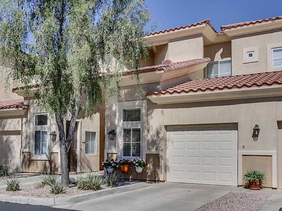 TURN KEY Prime Scottsdale location! Community is on the TPC golf course! Minutes from Westworld, Scottsdale Airpark,upscale Kierland shopping and dining, and the Scottsdale nightlife! 2 bedroom 2 bath unit w/ saltillo tile in all but the bedrooms and boasts 12 ft ceilings through out that give it a huge feel. Stunning kitchen with breakfast bar and sep dining area. Great room boast large built in entertainment niche, fireplace, and large patio exit with views of the golf course. Master has full bath, double sinks, walk in closet, & linen closet. Bedroom 2 has private access to 2nd full bath which is also guest bath. Inside laundry & one car garage. Large private patio with gorgeous mountain views! Unit is directly across from community pool & spa, too!