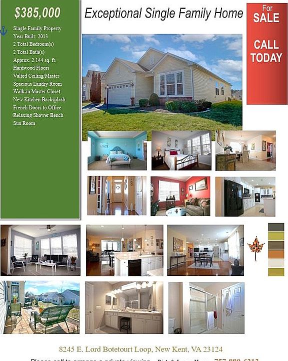 Enjoy Active adult living in one of Virginia's fastest growing counties. The 55+ Four Seasons at New Kent community amenities offer a private pool, clubhouse (s) with game room and firepit to meet friends and neighbors. You will be just minutes away from a farmers' market, beautiful New Kent Winery/Brewery and the Vinterra Golf Couse well as many others. This one owner home has been meticulously maintained and offers the gourmet kitchen with double ovens, gas cook top and extended white/maple cabinetry with glass doors. All appliances will convey. Everything feels bright and clean as you enjoy open concept living with a formal dining room and a sit up bar for morning coffee or tea. Hardwood floors in the main living areas. A nice office with French doors that could also double as sleeping space in a pinch. Sunny and bright sunroom open to a paver patio. Primary bedroom with trey ceilings, big bathroom with double sinks, large walk-in floor to ceiling tile shower and huge closet. The garage is oversized 24 x 20 and offers lots of space for storage and shelving if you wanted to build a little work bench. This owner put in a pull-down set of steps to access the storage above as well.