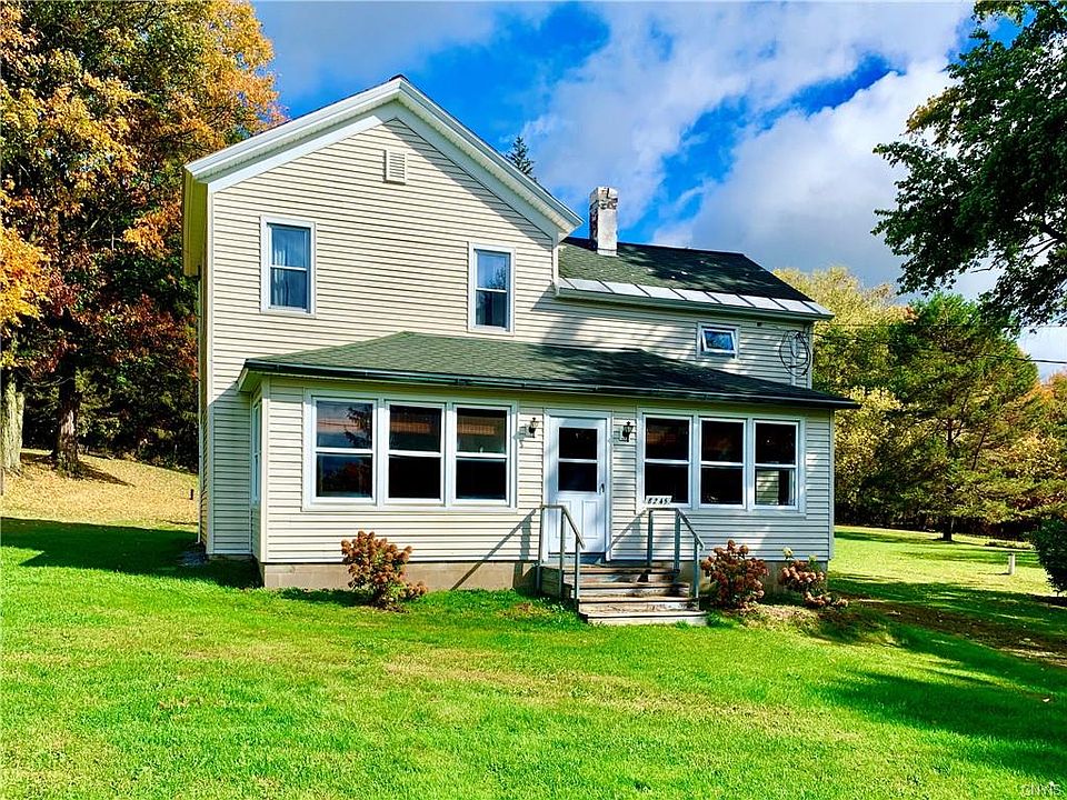 Looking for a quaint country home with views to die for? Look no further! The large lot and beautiful natural landscaping welcome you before you step foot in the door. This well maintained home has nearly new vinyl siding, windows and roof. The sunroom off the front will provide you with warm, natural light all year round. Original hardwood flooring carries throughout the main floor. Enjoy your meals in a large eat in kitchen or formal dining room. Convenient first floor laundry. Upstairs boasts three bedrooms, plus additional space for a home office or whatever your heart desires!
