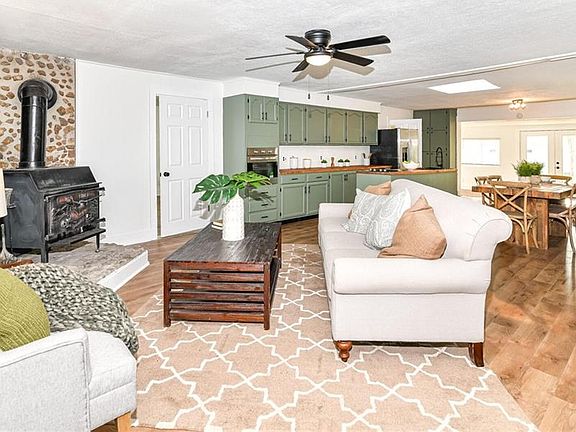 Fully updated 4 bedroom, 2 bathroom ranch on 2 acres w/ a brand new roof, furnace, heat pump, & AC! Home has new LVP flooring and fresh interior & exterior paint throughout the entire home. The living room welcomes you with a stunning floor to ceiling, masonry surround, free-standing wood burning stove. The living room is open to the kitchen, which includes space for a large dining table. Kitchen features beautifully painted cabinets, butcher block countertop, stainless steel appliances, & a center island w/ an electric cooktop. Off of the kitchen is another living space. Owner's suite boasts access to the backyard, LVP flooring, a sitting area, & a bathroom w/ a tub/shower combo. The 2 acres includes a 2 car detached garage & pole barn.