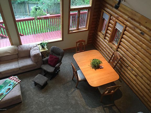 Cozy log home in established Sand Lake neighborhood minutes from Kincaid Park and great schools. 3 Bedrooms, 2 full baths, 2 car garage, 1872 sq ft with a fully fenced back yard. New black granite counter tops and gas range with stainless steel appliances. Newly tiled kitchen and bathroom with new paint and carpet throughout as well. A wood stove centerpiece for the family room (See Supplement) that has plenty of natural light through the chalet style windows. Wrap around deck off the main living area and a balcony off the master suite/loft that has en suite bathroom.