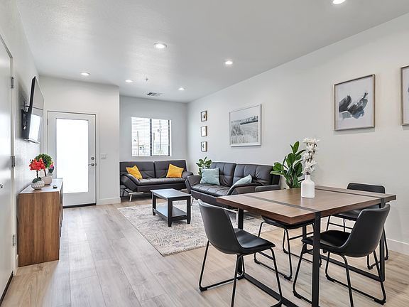 3 Bedrooms 2.5 bathrooms townhome with attached garage, private backyard. Townhomes comes with a beautiful kitchen, granite countertops, modern backsplash, beautiful white cabinets, lots of counter space, stainless steel appliance package. Porcelain Floors downstairs, up stairs carpet. Full size Washer and dryer in unit. Large walk in closet in master with vanity.