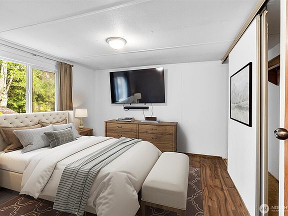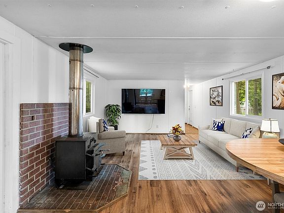 MUST SEE! Birch Bay Village Gem! This 2 Bdrm,1 bath manufactured home on an 8200+ Sq/Ft meticulously landscaped secluded lot beside a 60 foot greenbelt with trees, and private RV parking. The Manufactured home is in great shape with a newer roof, wood free standing stove, newer vinyl windows, new back porch decking, newer exterior paint, freshly painted interior, lovely wooden storage shed. EV Charger installed (2K value) If you want peace & quiet plus privacy look no further! Come enjoy the BBV amenities which include a nine-hole executive style golf course, marina, pool, clubhouse, saltwater parks, 2 private lakes, quiet roads and 24 hour manned gated security. Call LA for financing information. Best value in Birch Bay Village!