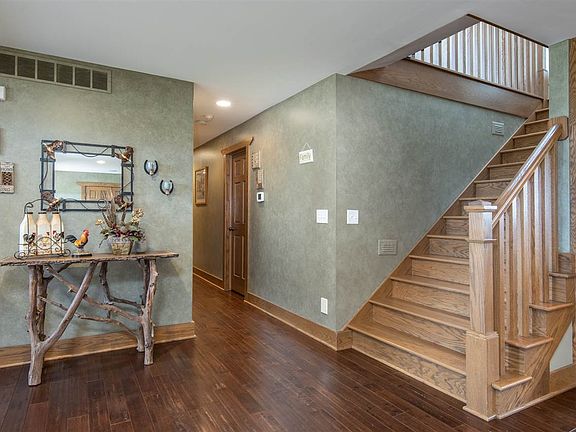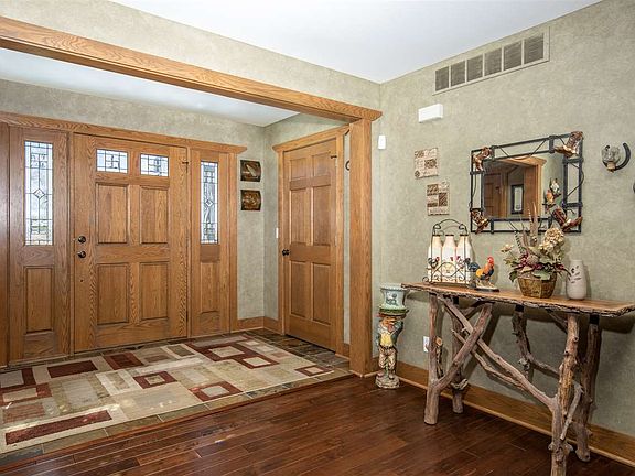 No corners cut on this spectacular country dream home. Hardwood slate floors throughout. In-floor heat. Chef's dream kit, high-end rustic hickory cabinets & commercial grade ss appls. Custom painting & hdwd, 5½" trim throughout. Huge family rm w/projector & beautiful gas/wood frplc. Master suite lives up to its name leading out to deck, custom tile shower, walk-in closet w/custom shelving. Back up furnace in attic. Upstairs features two identical rms w/jacuzzi bath/shower walk-in closet & secret rm access in closet. Kids will love it! Basement features a exercise rm, entertainment rm, full bath & cedar rm which would make a great wine cellar! Great for that man cave. Exterior offers top of the line hardie plank & brick siding, 50yr steel roof, 2 car attached & 4 car detached garage w/roughed-in heated flr. The country setting & landscape will sell this house alone! 2.4 acres on house lot & another 18.6 on separate parcel.