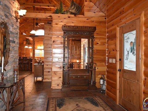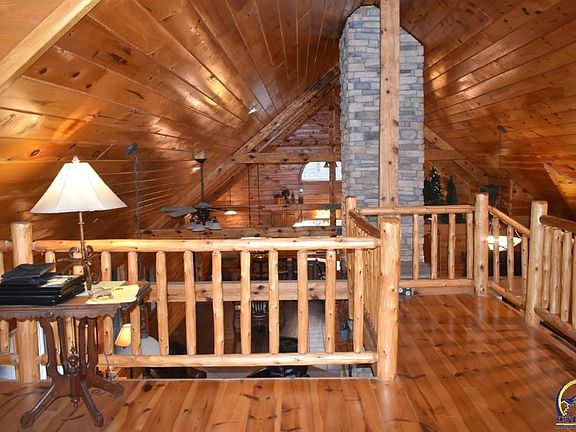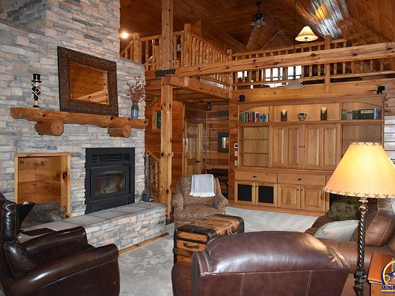 Enjoy living close to all of Perry Lake activities in this beautiful, well-built, all electric log home in Wind-n-Waves Sub. Come through the entry into the Great room with impressive two-story rock fireplace. Kitchen has island with storage and separate pantry. Main floor has access to sitting room, screened deck. use the log staircase to access the loft bedroom/office that has a bathroom and closet. Walkout basement has the family room, 2 bedrooms, storm shelter and impressive workshop area. New ground source heating/cooling unit. Patio. Firepit. Butterfly garden. Ready-made water stream at front entrance.