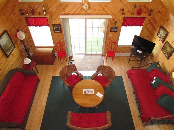 THE GREAT ESCAPE! Here's a charming, log cabin/cottage get-away with that rustic, lake retreat appeal but without the 'rough and shabby' part. This open concept gem is a 2005 build and has been perfectly maintained. The beautiful interior is accented by the exterior's assets including: water-view front deck/porch, lake level lot and patio, and a 1.5 story XL cottage/storage shed with a sleeping loft and it's own 1/2 bath. Not too fancy, but sure not shabby...get it while the price is right!