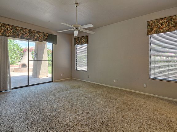 Pre approved short sale!!!! Large beautiful lot with large flagstone patio, lush landscaping and a kiva fireplace. No neighbor on one side as it sides to open area.White kitchen cabinets and countertops, white ceramic tile flooring. Great open floor plan with large kitchen island open to family room. All three bedrooms have their own bath. This is a great opportunity for someone to pick up a deal in the North Scottsdale guard gated section of Grayhawk.