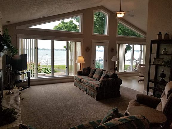 Big lake views from this 4 bedroom brick home. Private setting on Highland View with lake level lot and back lot with boat house/garage on the channel. This place is ready to go and includes pier, furnishings and Ski Centurion 2001 boat. Come and enjoy Wawasee lake front and channel.