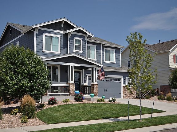Beautiful 5 bedroom 3.5 bath home in the Banning Lewis Ranch community. New carpet and LVP flooring being installed; updated pics coming soon! This home has many upgrades including wonderful spacious kitchen with an island, corian counters and new Samsung stainless appliances, newer roof and updated paint inside and out, finished basement with storage room/home gym, family room, full bath and bedroom. Hot Water heater replaced March 2022. The upper level has a large enclosed loft, currently being used as an office, but can also be used a second living room, play area, or lounge area. Also upstairs is the laundry, one full bathroom, 2 bedrooms, Large master suite to include a 5-piece master bath and large walk in closet. Tesla Panels installed July 2022 with a PowerWall whole-house battery backup and 220V EV connector installed. One year old Storage shed in the backyard conveys, as does the one-year new hot tub. Dog run already built to the side yard with doggie door to the house with a ramp. Not seen in the pics is an extended driveway that fits three cars. HOA includes the use of the Ranch clubhouse, fitness center, outdoor pools and tennis courts, and trash pick-up. There are numerous parks and walking trails throughout the neighborhood. You don't want to miss this one!