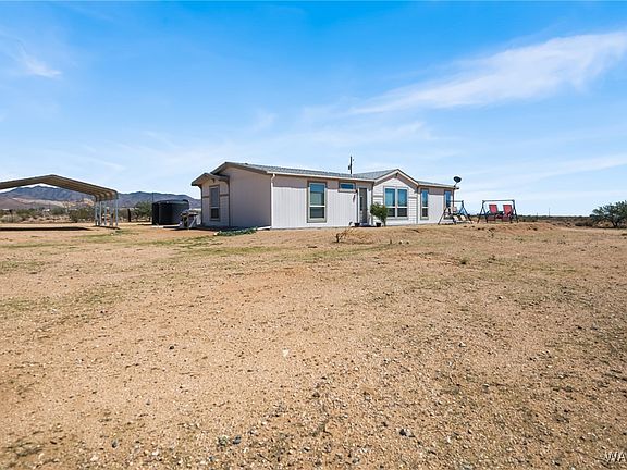 Peaceful Desert Retreat with Panoramic Mountain Views! 3BR/2BA on 4.02 Acres welcome to your private oasis! This spacious 1,624 sq. ft., 3-bedroom, 2-bath manufactured home is perfectly situated on a 4.03-acre corner lot, directly across from BLM land, offering unobstructed panoramic mountain views and the serenity of open space. Inside, you'll love the open-concept, split floor plan with 9-foot ceilings and laminate flooring throughout. The bright and airy kitchen is a cook's dream featuring elegant cabinetry with lighted uppers, Corian countertops, a large kitchen island with breakfast bar, a farm sink and a large pantry. Enjoy casual meals in the dining area while soaking in the natural light and stunning views from the many windows throughout the home. The spacious living room flows seamlessly from the kitchen, creating a perfect space for entertaining or relaxing. The primary suite offers a large walk-in closet, dual sinks, a soaking tub, and a separate shower for added comfort and convenience. Two additional guest bedrooms and a full guest bath offer plenty of room for family or visitors. Other features include: * Ground-set foundation * Underground utilities with 200-amp service * Fully fenced property with two separate gated entrances * Laundry room with built-in cabinets and counter space * Additional appliances included: washer, dryer, refrigerator, and freezer * Water haul system with two 2,500-gallon storage tanks * Detached 2-car carport * Ample space to add a garage, workshop, or RV parking If you're seeking peace, privacy, and breathtaking views, this is the place to call home. Don't miss this rare opportunity to own land with unmatched tranquility and room to grow. Come and explore our beautiful Arizona desert, beautiful sunrises, sunsets and starry night skies. Don't wait call a Realtor and schedule your personal showing today!