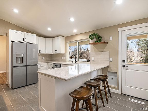 Welcome to this charming ranch with a completely remodeled main floor in the coveted Highlands Neighborhood. Boasting upgrades throughout, you are greeted with warm grey paint, white on white trim and doors, matte black hardware, and luxury vinyl plank making for a clean timeless look. The chef’s kitchen is updated with white shaker cabinets, stainless steel appliances, quartz countertops, and timeless glass subway tile. The peninsula is perfect for enjoying breakfast and coffee in the morning. The family room features a grand two story wood burning brick fireplace and wet bar. You will love this space for movie watching or game nights! Up the hall is a spacious primary bedroom with private access to the back patio and a beautifully remodeled bathroom. Plus an additional 2 bedrooms and 1 full bath that are also remodeled. All of which have great closet space. In addition, this home also has two sets of washers and dryers. The partially finished basement is home to a large game room and ample storage plus a partially finished bedroom and bathroom. The backyard is a great size and the shed offers ample storage as well. Great price point, and much of the updating has been done for you! Easy commute to Downtown or minutes from golfing, biking trails and parks nearby. Plus local shopping and dining options and just an all-around great place to live! Discover why this is the home you have been waiting for!