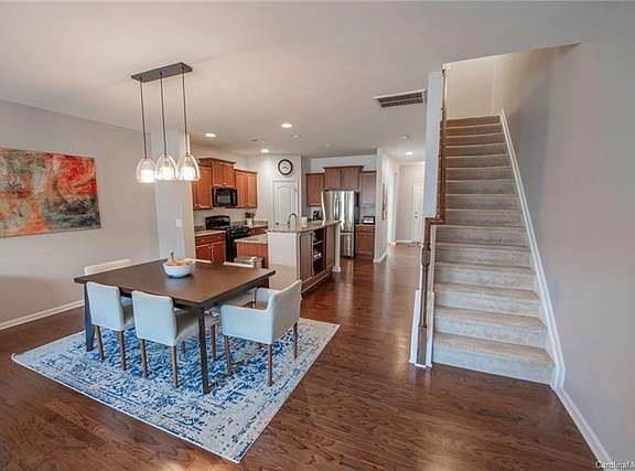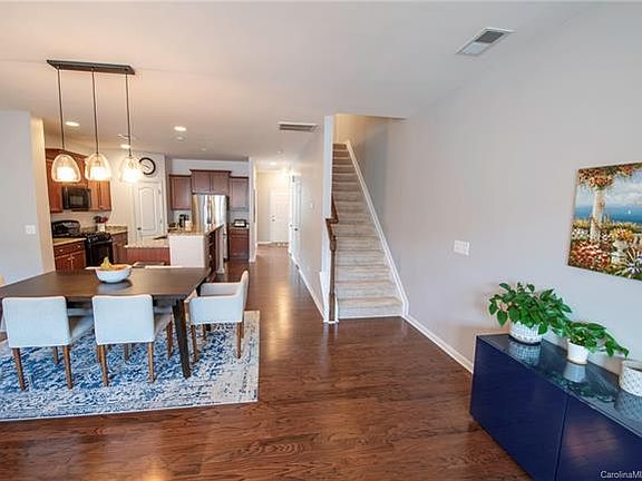 Beautifully maintained townhome located in Cornelius. Brand new hardwoods downstairs. Plenty of space on the main level w/ an open floor plan, formal dining room & hardwood floors throughout. Formal dining room is currently being used as a home office, great space for either arrangement. Amazing kitchen w/ lots of storage (check out the shelves and cabinets on the front of the island), stacked 42-inch cabinets, granite countertops, gas range/oven, big pantry, recessed lighting, breakfast bar/island and eat-in dining area. Sunny great room with fireplace and ample space for furnishings. Master bedroom is upstairs and features tiled floors, raised height double vanity, soaking tub and separate tiled shower. Two big secondary bedrooms, secondary bath w/ tiled floors. Neutrally painted throughout. Private outdoor living space with paver patio and fenced yard. Detached garage w/extra storage. Easy access to I-77, LKN parks, boat ramps, restaurants, shopping, entertainment & more.