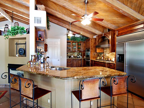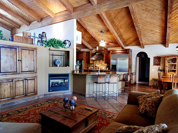 Wow! Magnificent home on .81 acre corner lot with circular drive and A+ curb appeal. Five beds/baths + guest casita, formal dining, open fam rm, large game room to include bar area/media, automatic sliding door out to extended covered patio with built-in stone BBQ, sparkling diving pool/spa, fire pit/gathering area, massive lot with grassy area, RV gate, tons of space for all your toys! Gorgeous saltillo tile flooring, vaulted wood ceilings with arches, built-in niches, gourmet kitchen with granite, custom cabinets, gas-burner range, 2x ovens, stainless appls, breakfast bar/nook, Master suite, w/ exercise room, jetted tub, steam shower, 2-way fplce, huge walk-in closet.