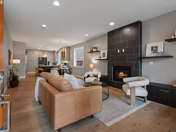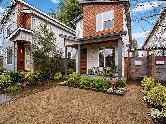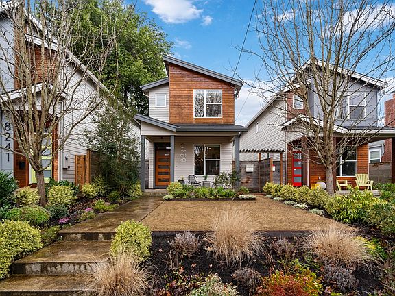 "Better than New" Modern Marvel in University Park. Inviting and gracious open concept living on main floor. The living room is light-filled and roomy, with a sleek gas fireplace and built-in shelving. The Chef's kitchen features a large island, beautiful quartz counters and stylish fixtures and finishes. Don't miss the powder room on the main with show stopper lighting! The Primary Suite is an oversized peaceful retreat with a walk-in closet and large bathroom with designer tile. Two good-sized bedrooms, laundry and a hall bathroom round out the second floor. Custom blinds throughout including remote electric sunshade in west bedroom. Spacious attached garage with driveway for additional parking. Easy access to garage from well maintained back alley. Cute shed in side yard for extra storage. Front yard has new, low maintenance landscaping and a SWEET covered front patio for sipping and chatting with neighbors. Location is a 10! Two blocks from Columbia Park, easy access to downtown and freeways, and close to the hip restaurants and shops of Kenton and St. Johns! Central air. HES = 7 [Home Energy Score = 7. HES Report at https://rpt.greenbuildingregistry.com/hes/OR10235341]